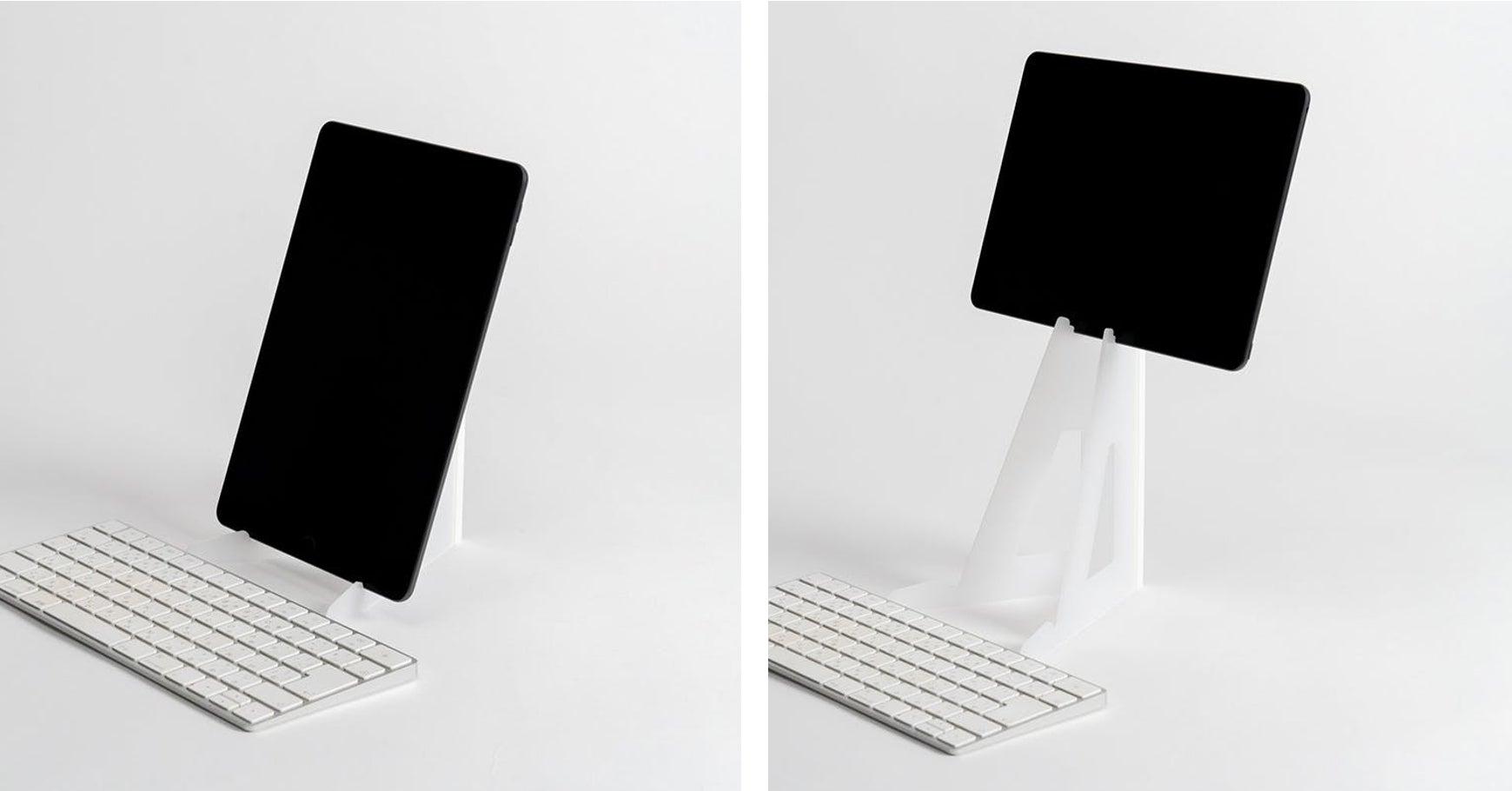 キーボードと一緒に使えば、PCさながらに作業することも可能。作業内容に応じて縦置きにしても。