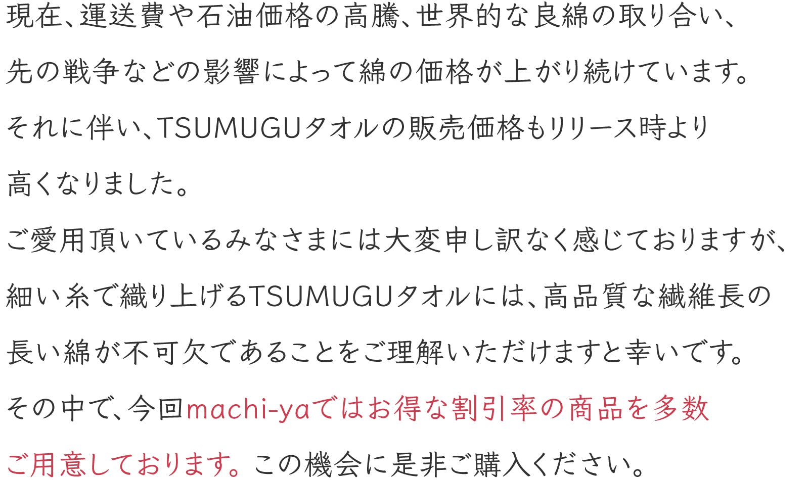 2024/09/06 12:00みなさまこんにちは、TSUMUGUタオルプロジェクトチームです。machi-yaでの初めてのプロジェクトが公開し、公開初日に目標金額を達成いたしました。ご購入頂いたみなさま、また、ページをご覧頂いたみなさま誠にありがとうございます。TSUMUGUタオルは日常生活を快適をお届けすることを目的に作られたタオルです。このプロジェクトを通して、毎日の暮らしをTSUMUGUタオルで快適に感じていただける方が増えるようにと取り組んでまいりますので、応援いただけるとうれしいです。何かご不明な点、ご質問等ございましたらお気軽にお問い合わせください。プロジェクト終了までよろしくお願いいたします。 もっと見る