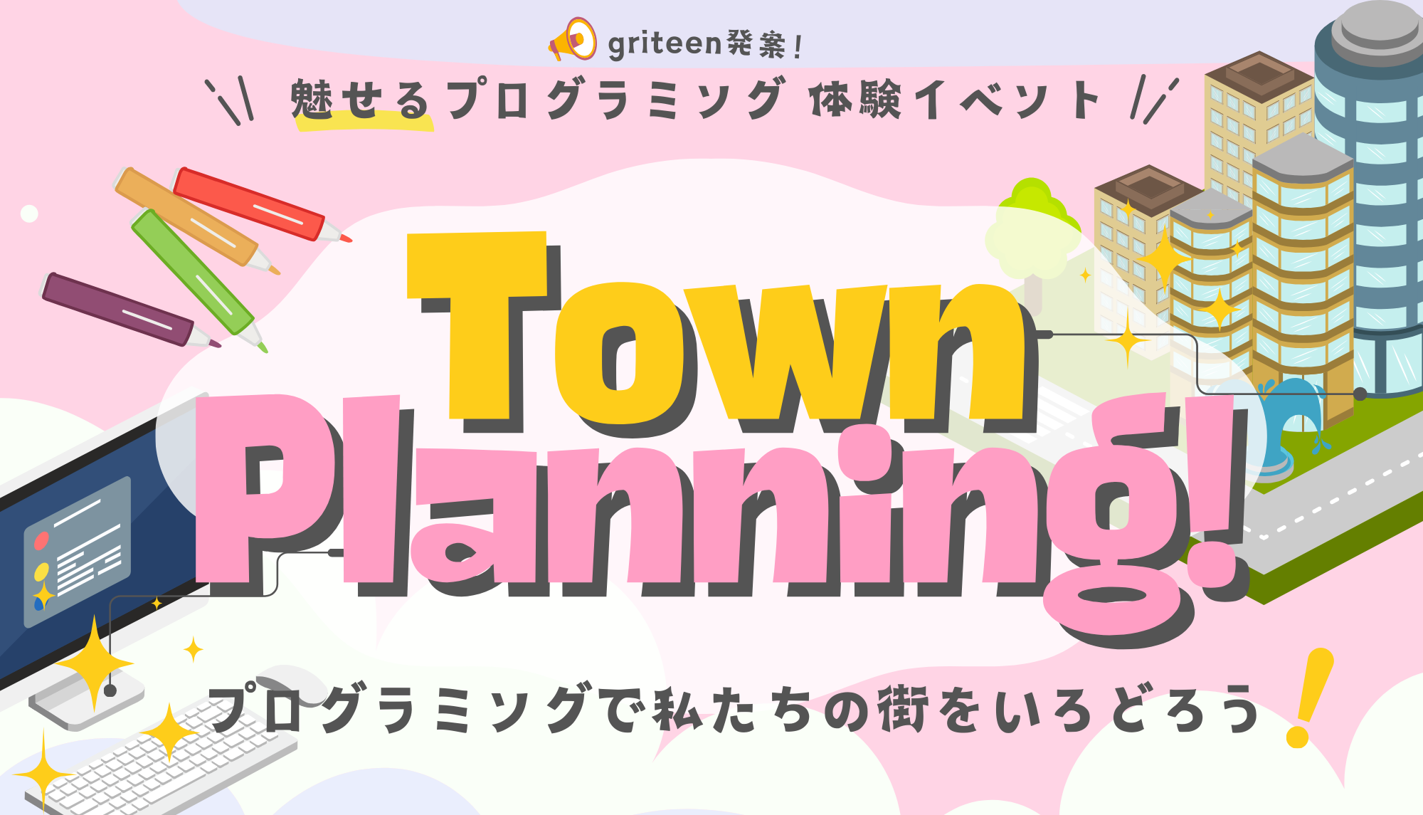 Griteenが実施するプログラミング体験ワークショップ・出張授業では、独自教材である「Town Plannning!」を使用して、プログラミングを体験していただきます。