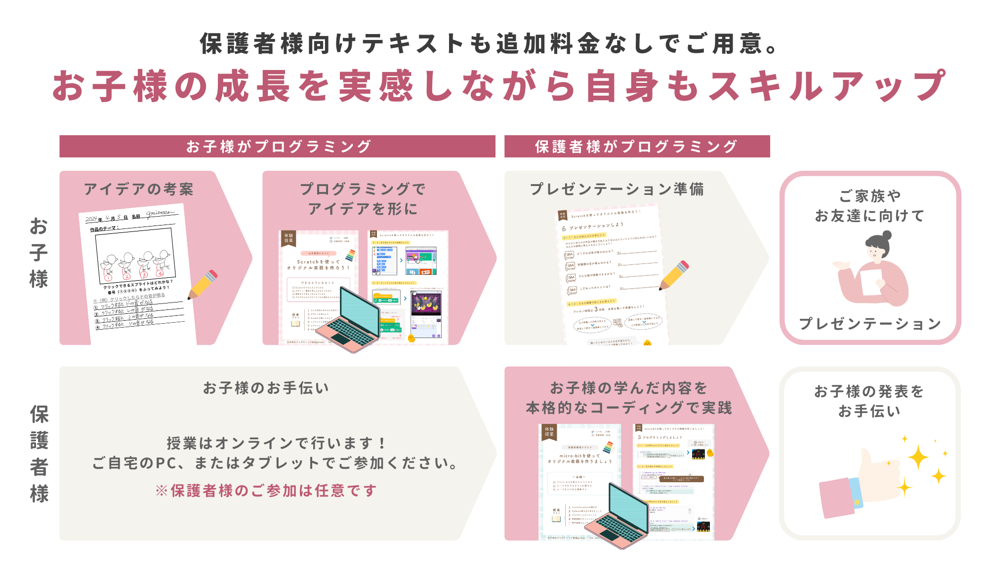 お母様は子育てをしながら自身のスキルを向上させ、将来的なキャリアの選択肢を広げることができます。