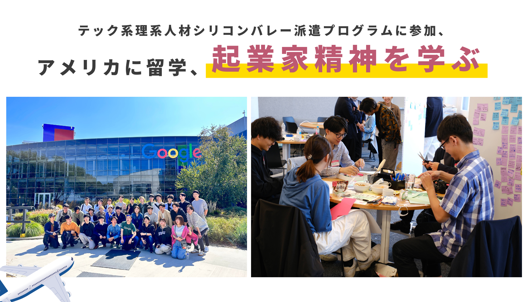そして大学院でも研究活動に励む中、経産省主催のテック系理系人材シリコンバレー派遣プログラムに採択され、アメリカへ留学し起業家精神を学びました。現地では、アメリカの発展を目の当たりにし、日本との差を痛感しました。