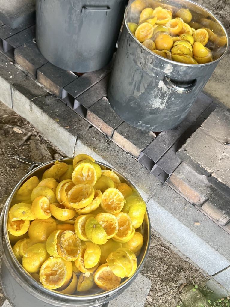 その果皮を森の精油所の薪窯にてエッセンシャルオイルに蒸留し、廃棄物を活用したアップサイクルしリユース製品に加工して無駄の無い社会づくりの一翼を担いたい!そんな思いから始まったプロジェクトです。
