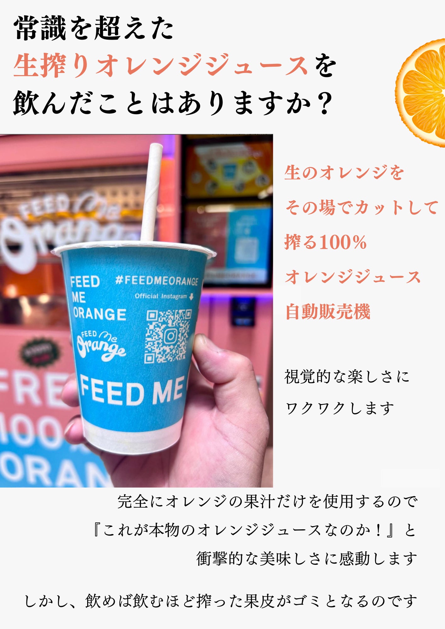 ある時、新聞誌面を見ていると京都市内にて生搾りオレンジジュースの自動販売機が増えてきているとの記事を見つけました。