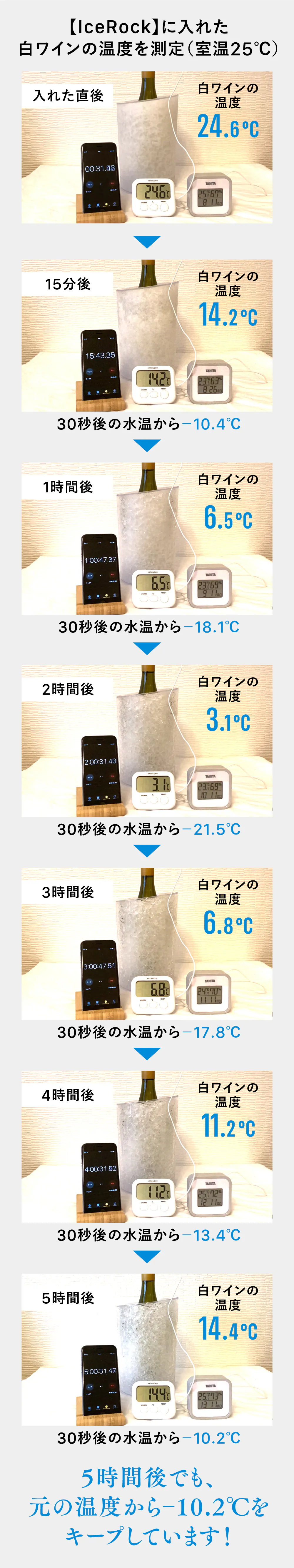 【IceRock】の凍った表面と放出される強力な冷気がボトルを冷やします。