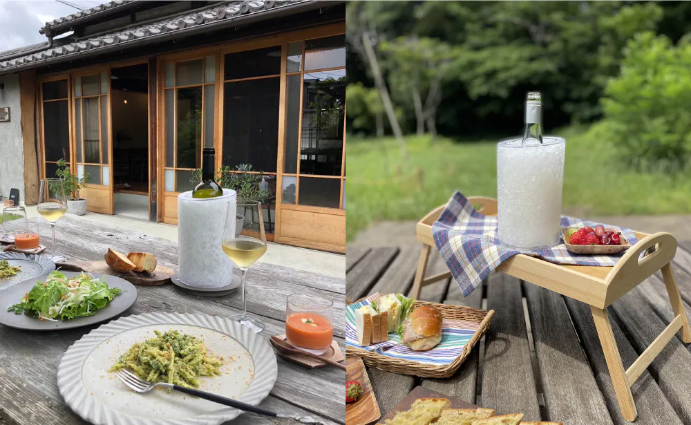 屋内でも野外でも、テーブルに【IceRock】があれば、冷たい飲み物に困りません。