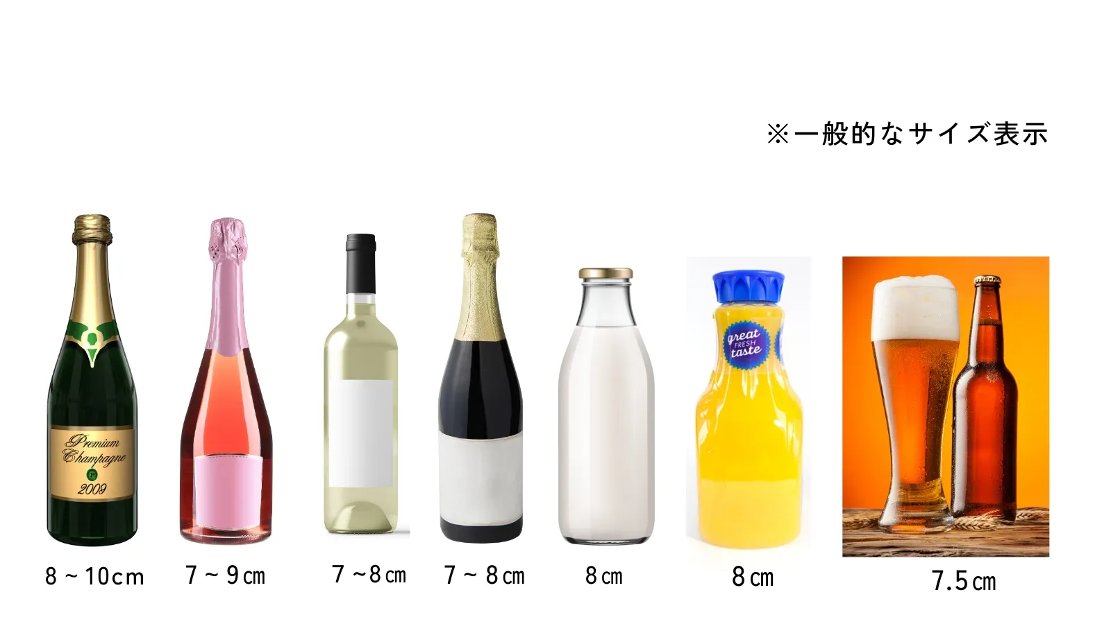一般的なボトルは直径7~9cmです。