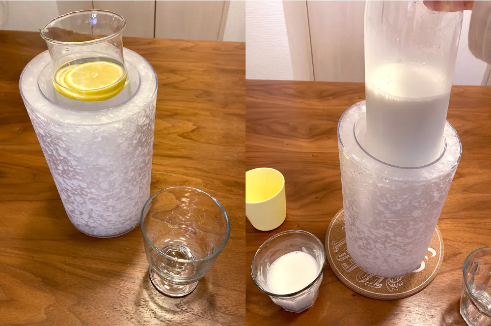 【IceRock】はワイン・ボトルクーラーとして誕生しましたが、冷酒として楽しむ日本酒やビール瓶・缶、炭酸やジュースの入ったペットボトル、またはピッチャー、デキャンタなど多様なボトル、容器に対応しています。
