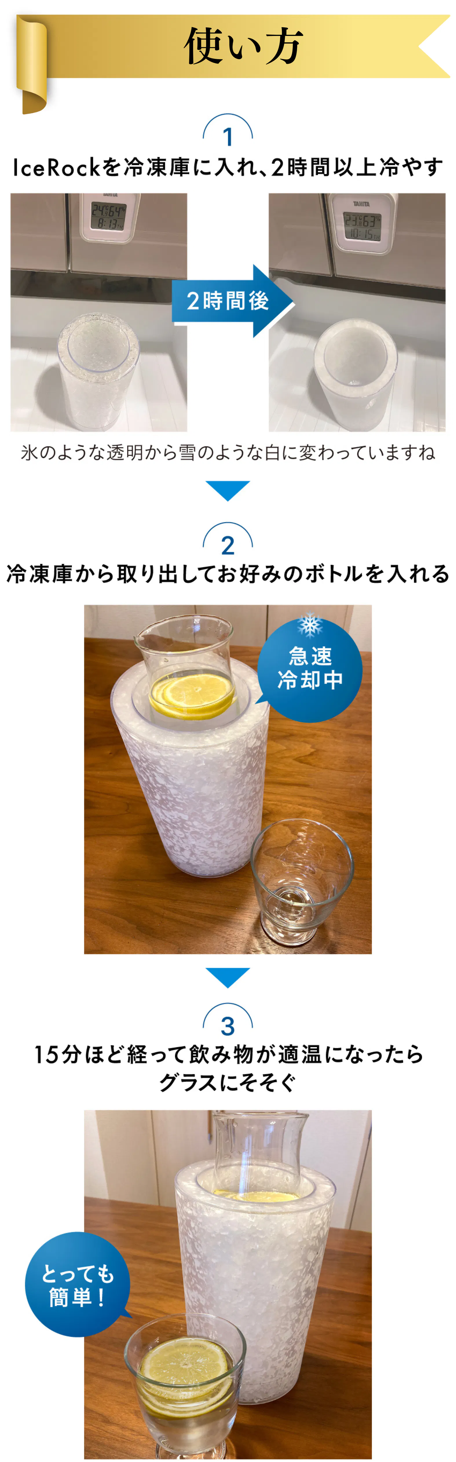 マイナスの冷気が“冷たさ”と“涼しさ”を届けます。冷たい飲み物が欲しいとき、【IceRock】が活躍します。