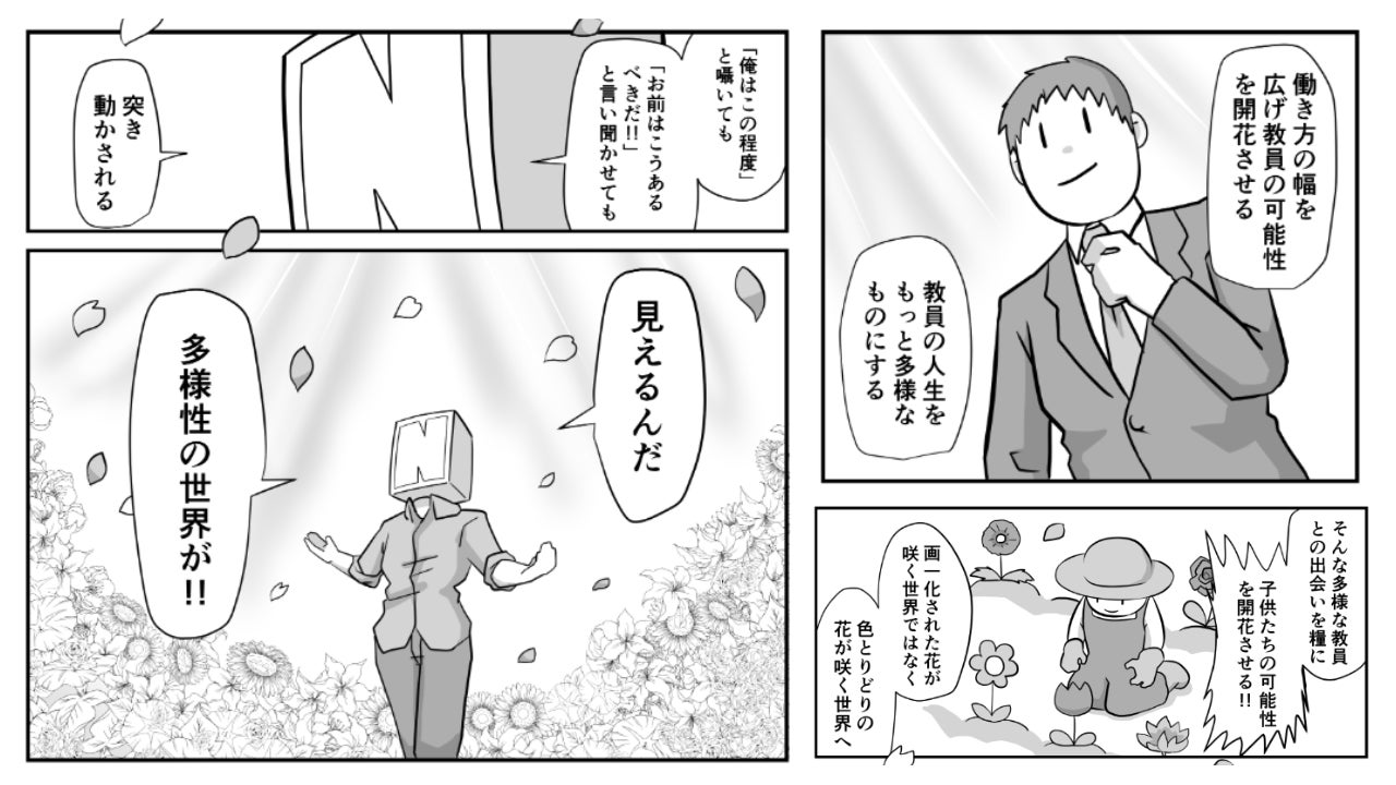 さらに、本書のイラストには東京都で公立高校教員をしながら育児漫画の執筆をされているパパ頭さんにご担当いただき、本編の最後には複業先生のある一日を切り取った漫画も制作していただきました。