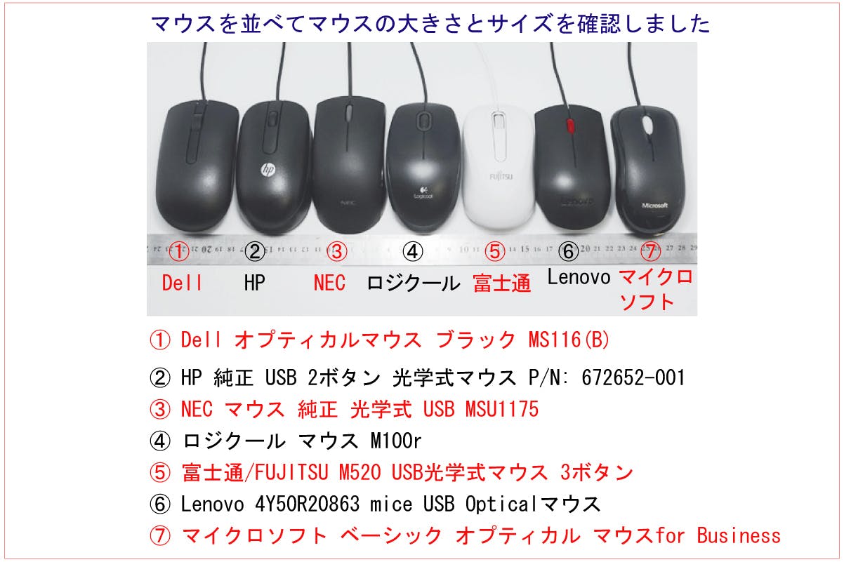 ★ マウスの Mサイズのマウス は エレコムのM-IR07DRPN を参考にしています。