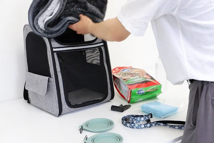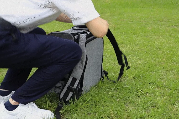 ケージにするにはファスナーを開けて引き起こすだけ。簡単にリュックから変身します。小型犬であれば必要十分以上の広さがあり、快適に過ごしていただけることでしょう。