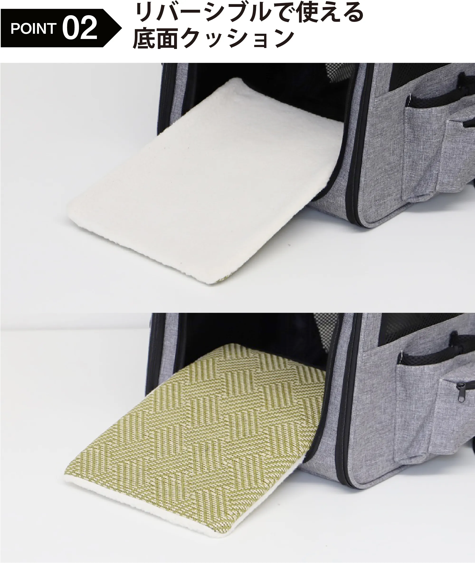 冬はモコモコのファー素材面で暖かく、夏はさらっとひんやり素材面で快適に。リバーシブルで使えます。