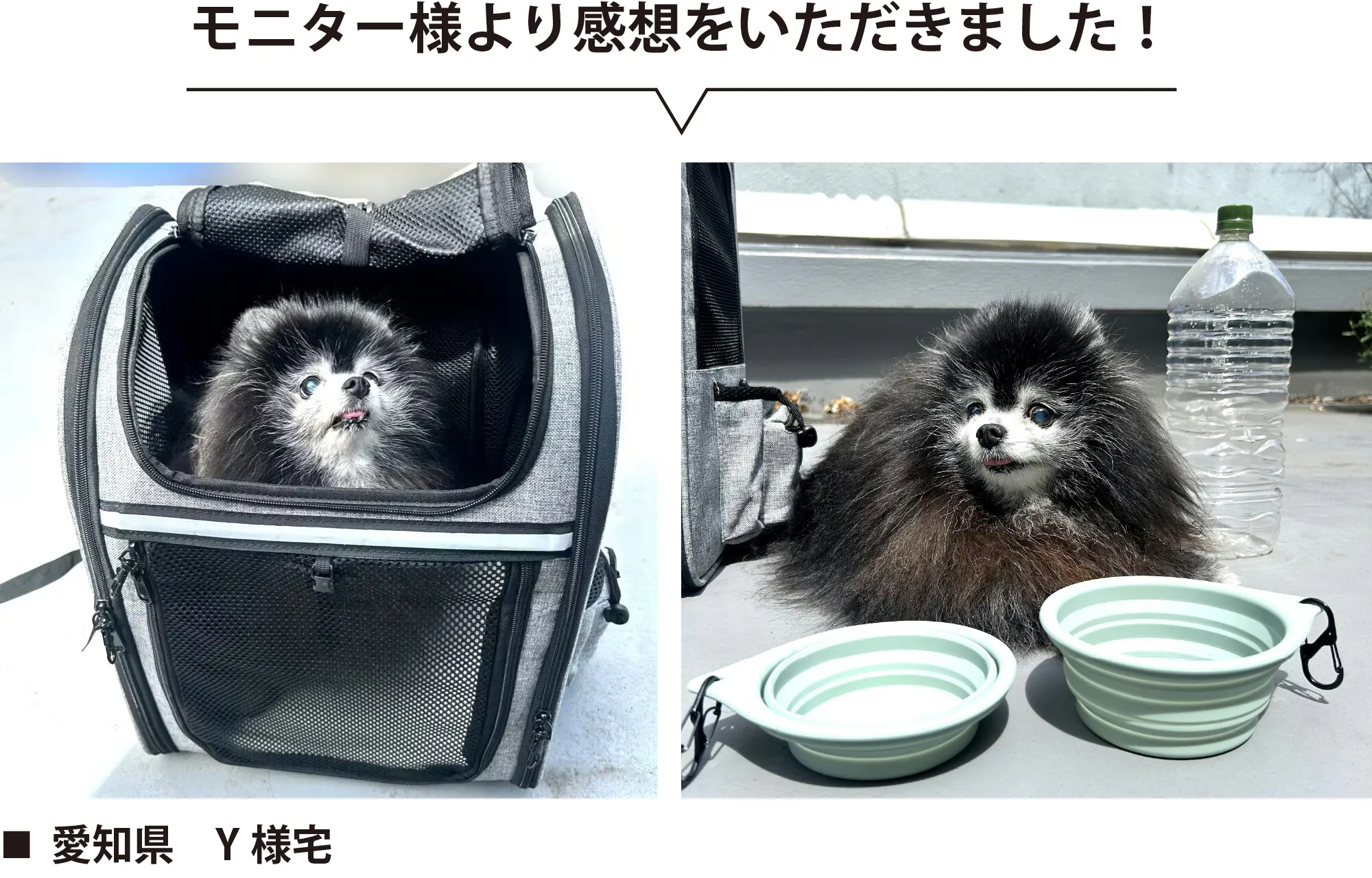 2024/09/10 19:00モニター様よりご感想をいただきました!ご協力ありがとうございます。笑顔がとても素敵なワンちゃんですね!埼玉県 K様宅【ワンちゃんの情報】犬種:トイプードル(ドワーフ)体重:5.8kg【ご感想】 うちのワンコでギリの大きさのリュックだと思います。リュック自体の重さはありますが、骨組みがしっかりしてるので安心して移動できるのではないでしょうか。食器やカラーやリードは、災害時にリュックにワンコを入れてしまうと忘れてしまいそうなので(特にリード)、入っていてとても助かります。ブランケットがとても気に入ったようでした。 いざという時はこのセット以外で必要なものを考えるだけでいいので、気持ち的に楽だと思います。ハンドブックもとても参考になりました!拡張機能の部分は出し入れにコツがいりますのでそこは改善ポイントです。ワンちゃんにも気に入っていただいたようでとても嬉しいです!拡張機能はおっしゃる通り最初の内は力が必要です。何度か出し入れすると最初よりは動かしやすくなりますが、改善ポイントですね。貴重なご意見ありがとうございました!それではまた次回!宜しくお願い致します! もっと見る