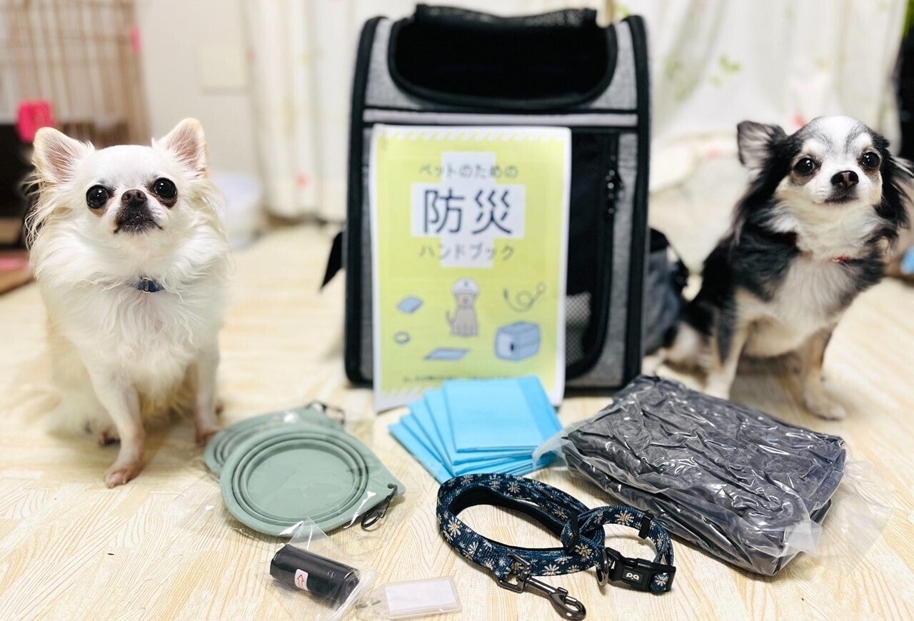 A:地味ですが必要なものに絞って構成されています。ケージになる防災バッグ(リュックタイプ)、防水ブランケット、フードボウル、水飲みボウル、首輪、リード、ネームタグ、ペットシート、ロール式ポリ袋、そして防災バッグを完成させる手引きと避難先での使い方が入った防災ハンドブックの10点セットとなっています。
