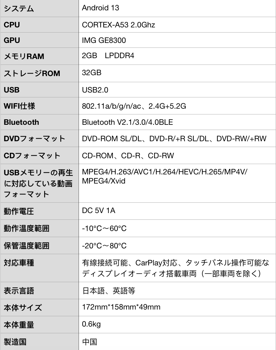 ※市販のDVD・CDのみ対応、ブルーレイDVD・CPRMが再生できかねます。車の相性やディスクの年式・劣化・状態・フォーマットなどによって日本市場向けのDVDでも再生できない場合があります。