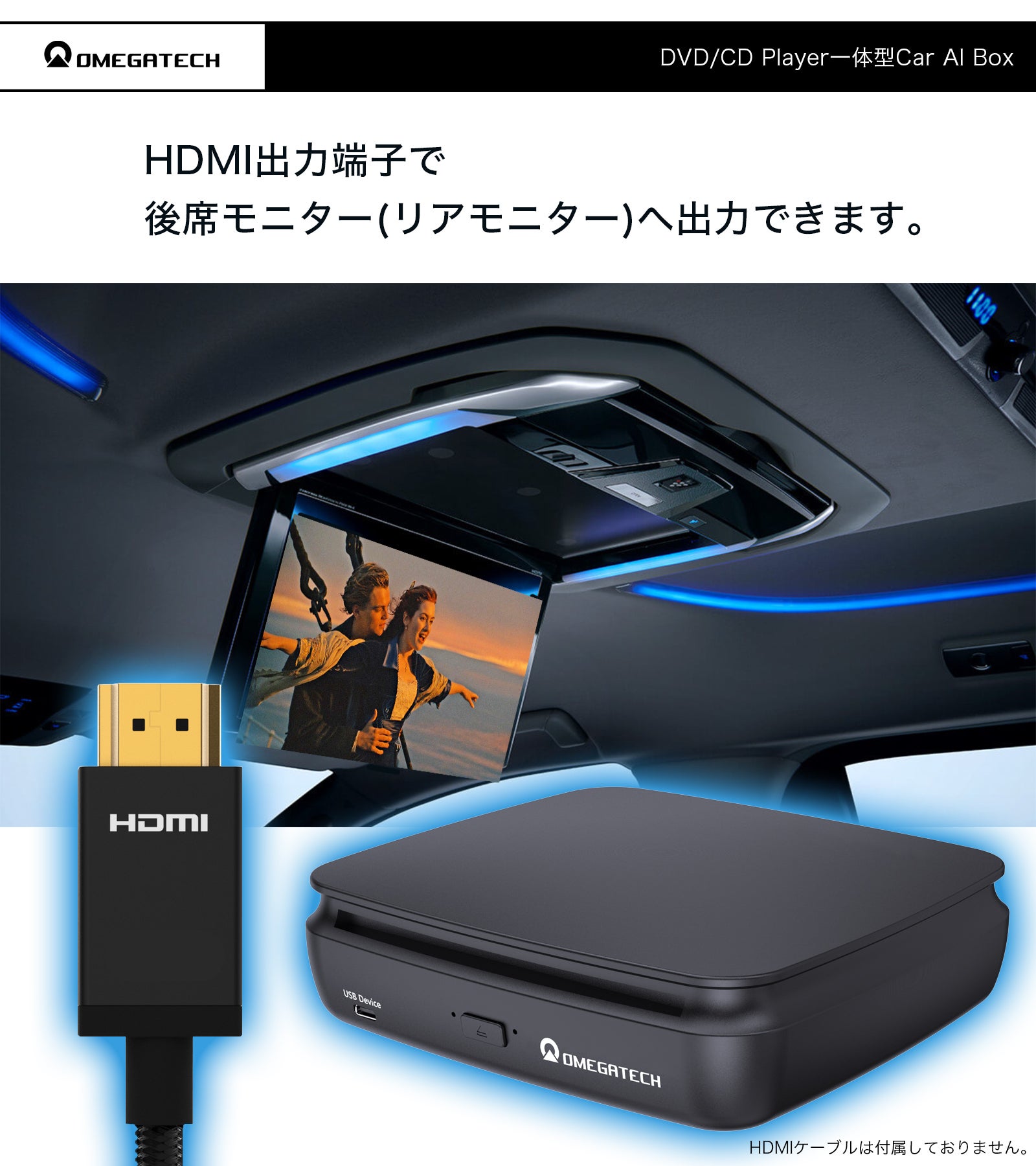 HDMIを使用すれば、本機のHDMI出力(映像のみ)が可能となります。後方座席でも楽しめます。