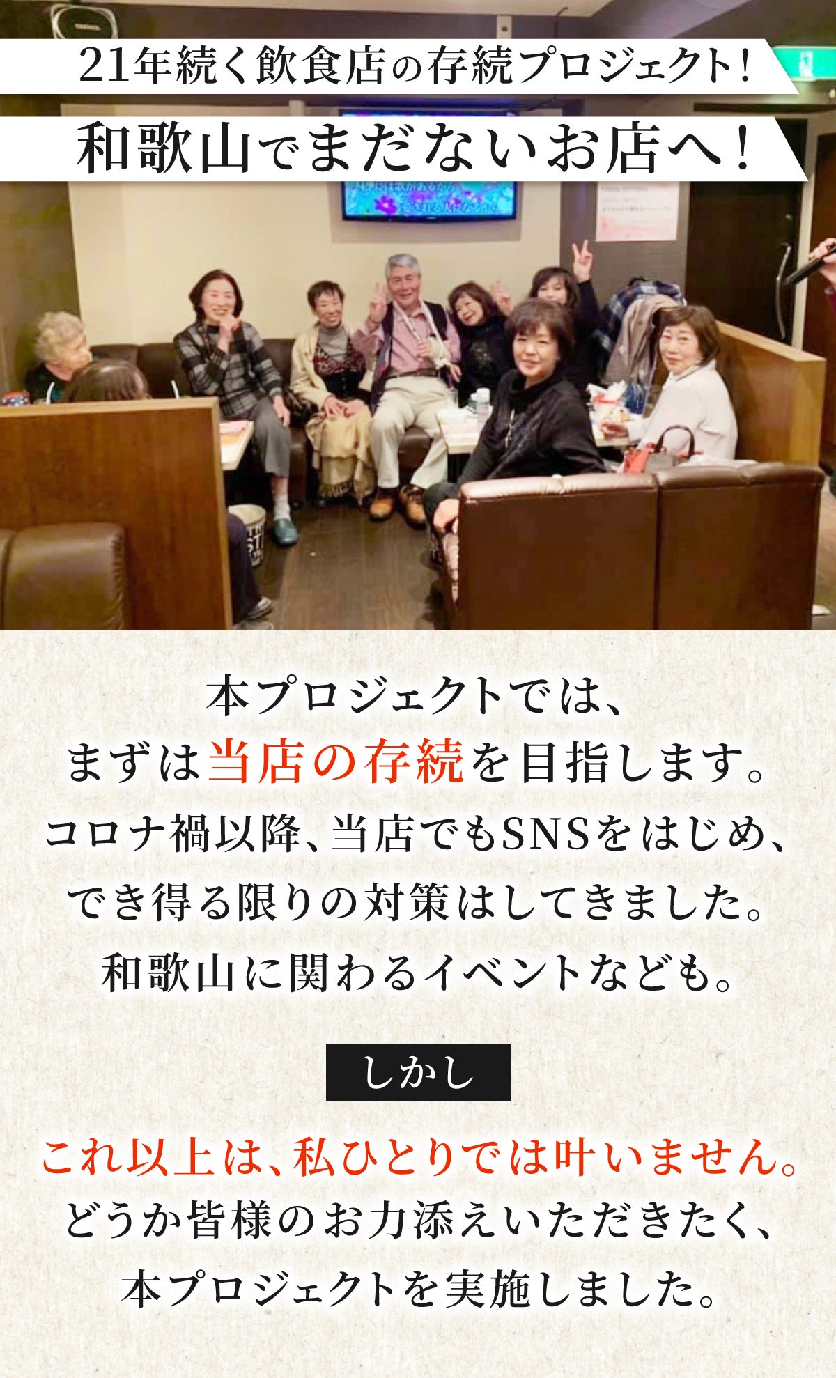 しかし、21年和歌山にて続けてきて、これから「もっと和歌山を盛り上げたい!」と思っているため、ここで諦めるわけにはいきません。
