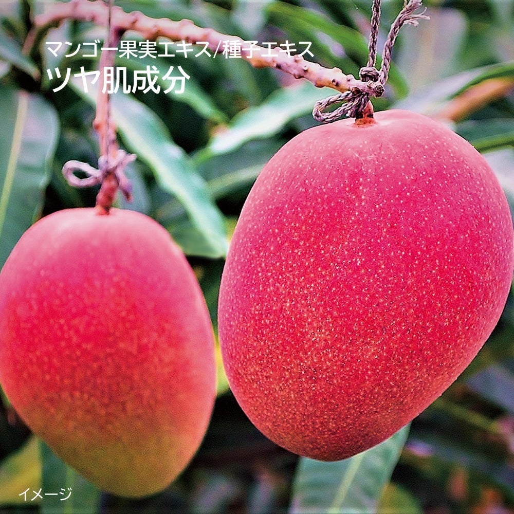 宮古島産マンゴーの果実と種子から抽出したエキスを使用しています。マンゴーエキスは、肌にうるおいと、ツヤを与えると言われています。