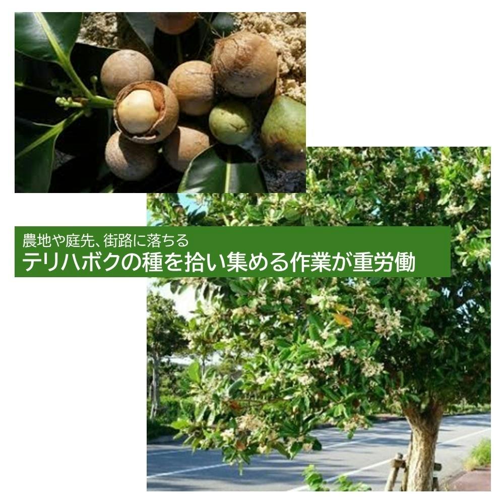 テリハボクは樹高10~20mで、一般に海岸近くに自生し年に2回種子が採れます。種子には50~70%の良質なオイルが含まれています。