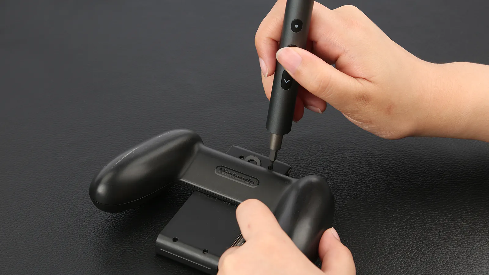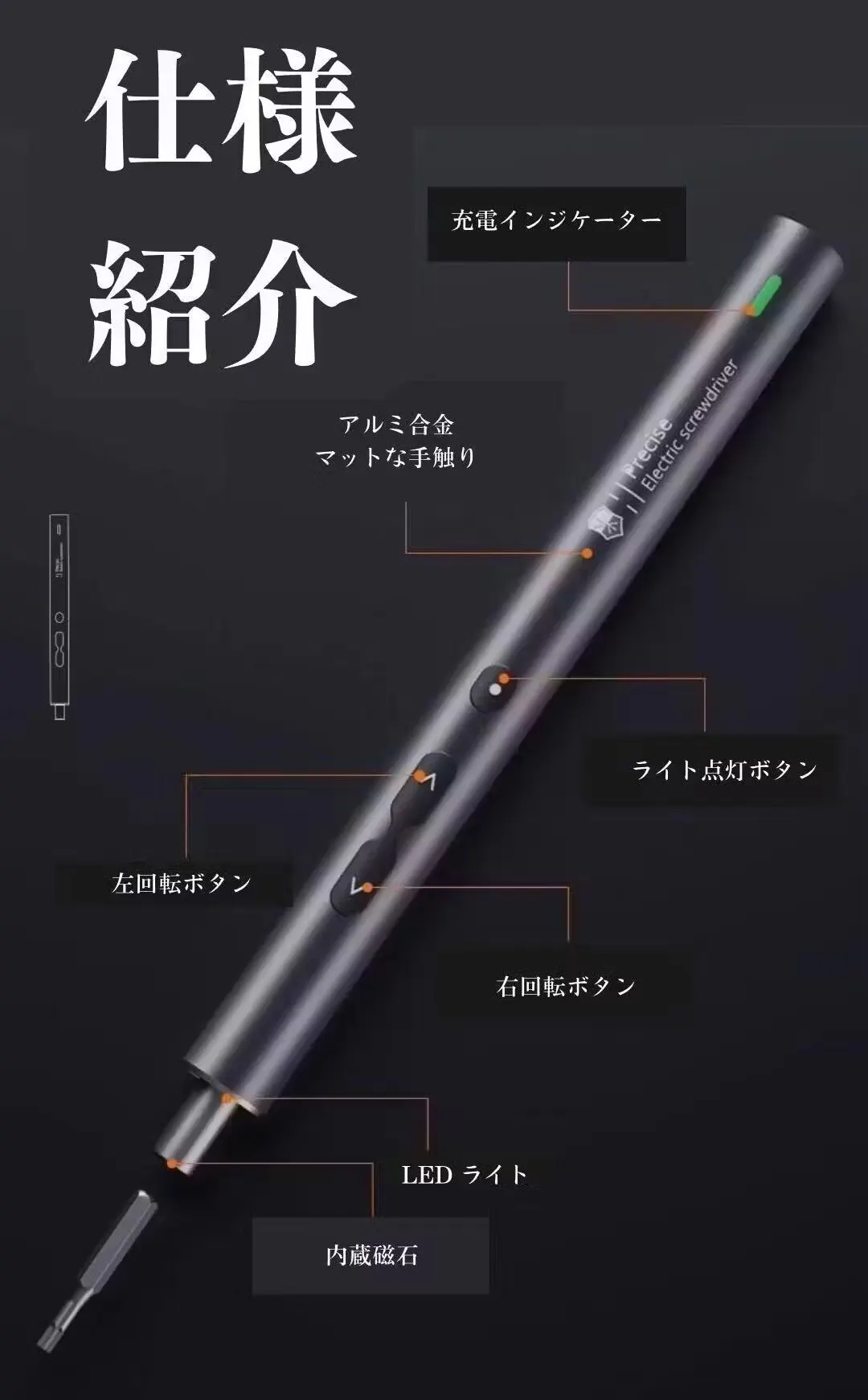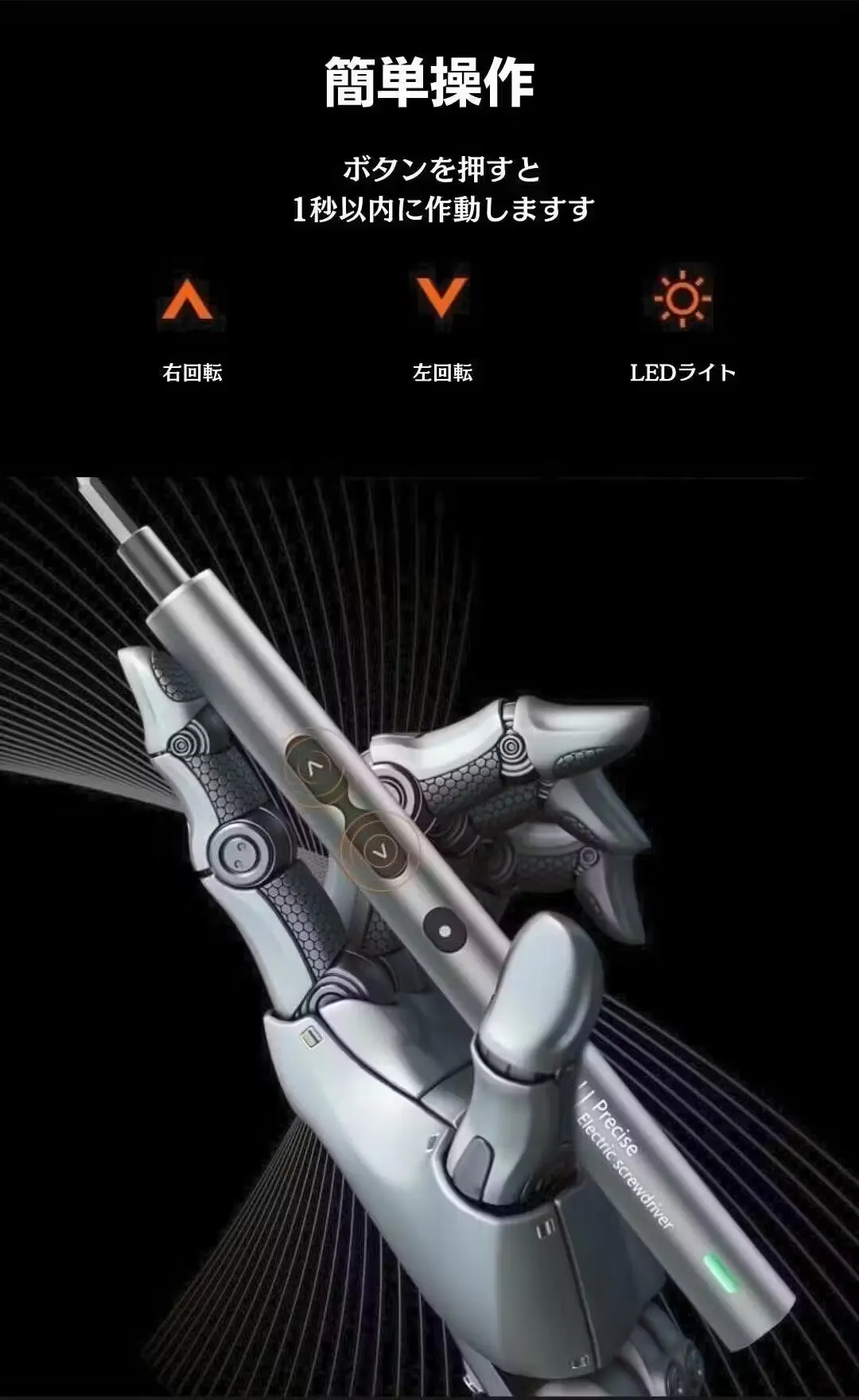 ③ 右回転・左回転・ライト点灯、3つのボタンで簡単操作できる電動精密ドライバー。