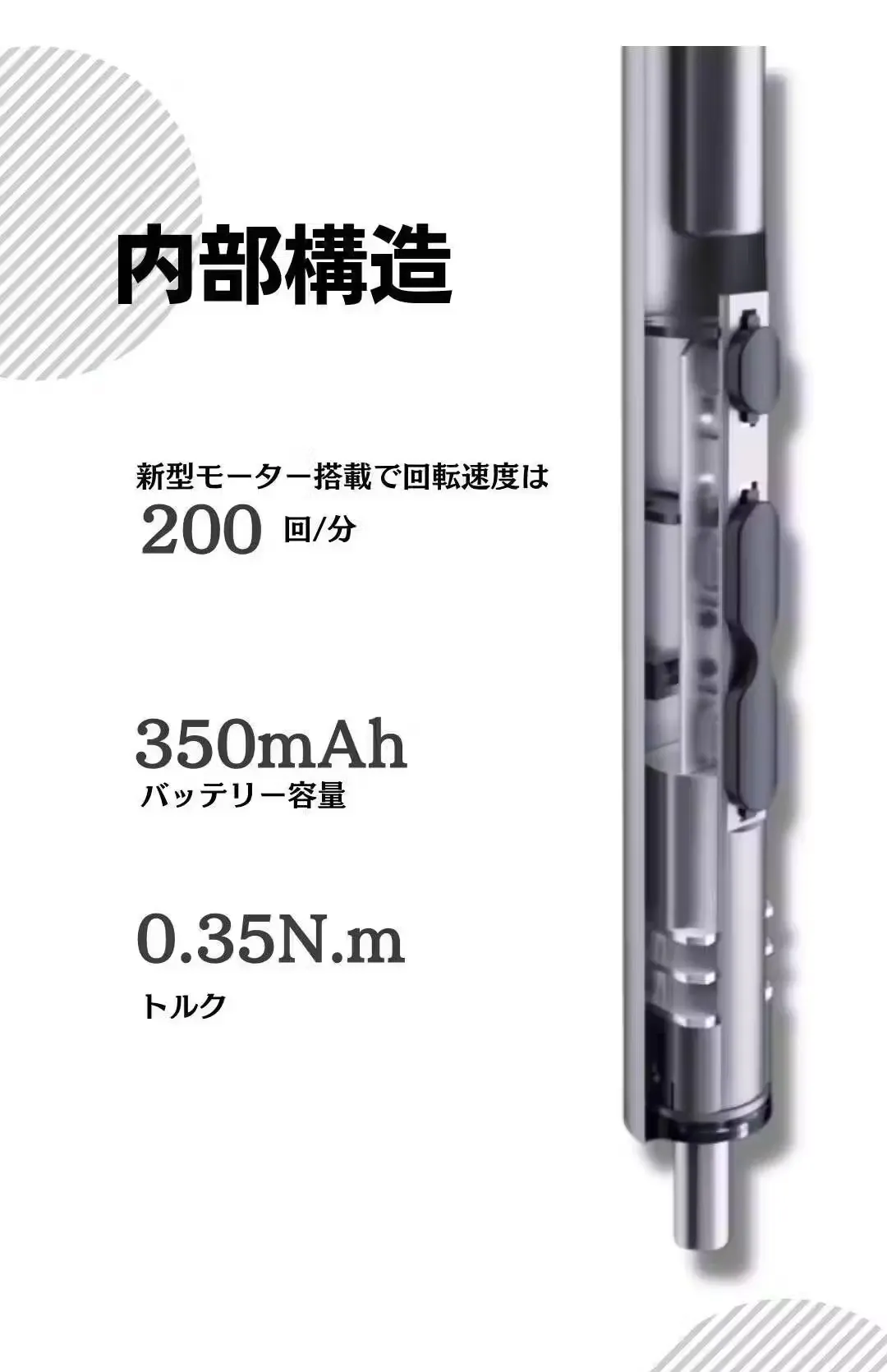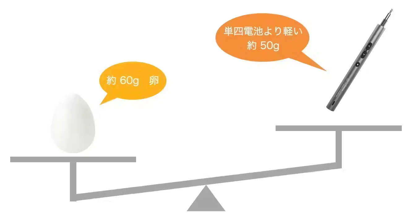 ドライバー本体の重さは約卵1個分。直径16mmのスリムなデザインなので、ペンのように簡単に握れる仕様です。