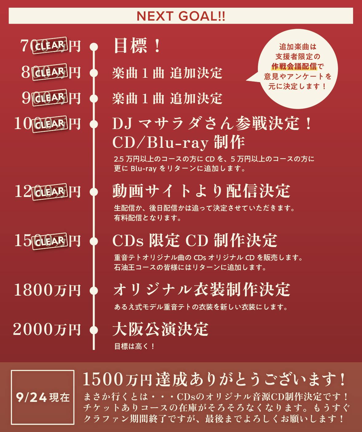 9/24:1500万円突破!CDsさんのオリジナル音源制作決定しました!