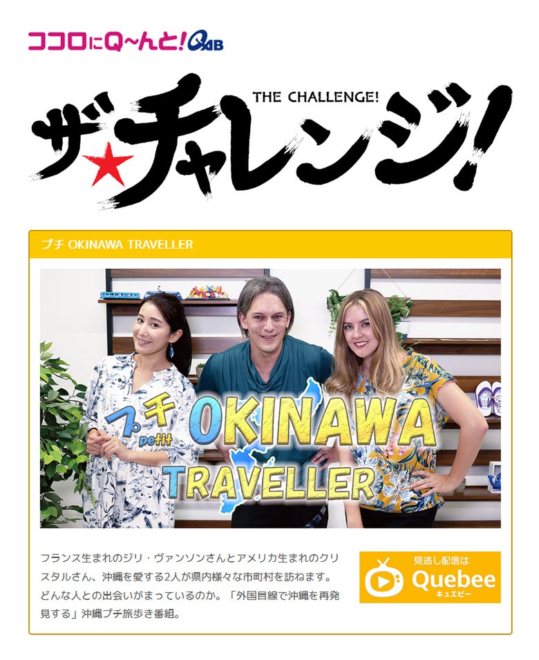「プチ OKINAWA TRAVELLER」は、日本大好きな、日本在住二十数年を経て沖縄に住み着いたフランス人リポーターと、沖縄出身のタレントが、沖縄のリアルな魅力やお出かけ情報、体験をお届けする番組です。