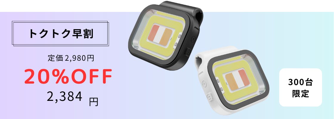 パッケージ、ポータブルライト、USBTypeC、固定用バンド、説明書が同梱されています。