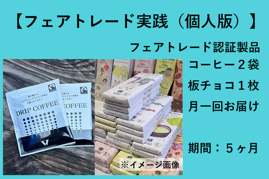 月に1度、コーヒー2袋と板チョコ1枚を5ヶ月間お届けします。