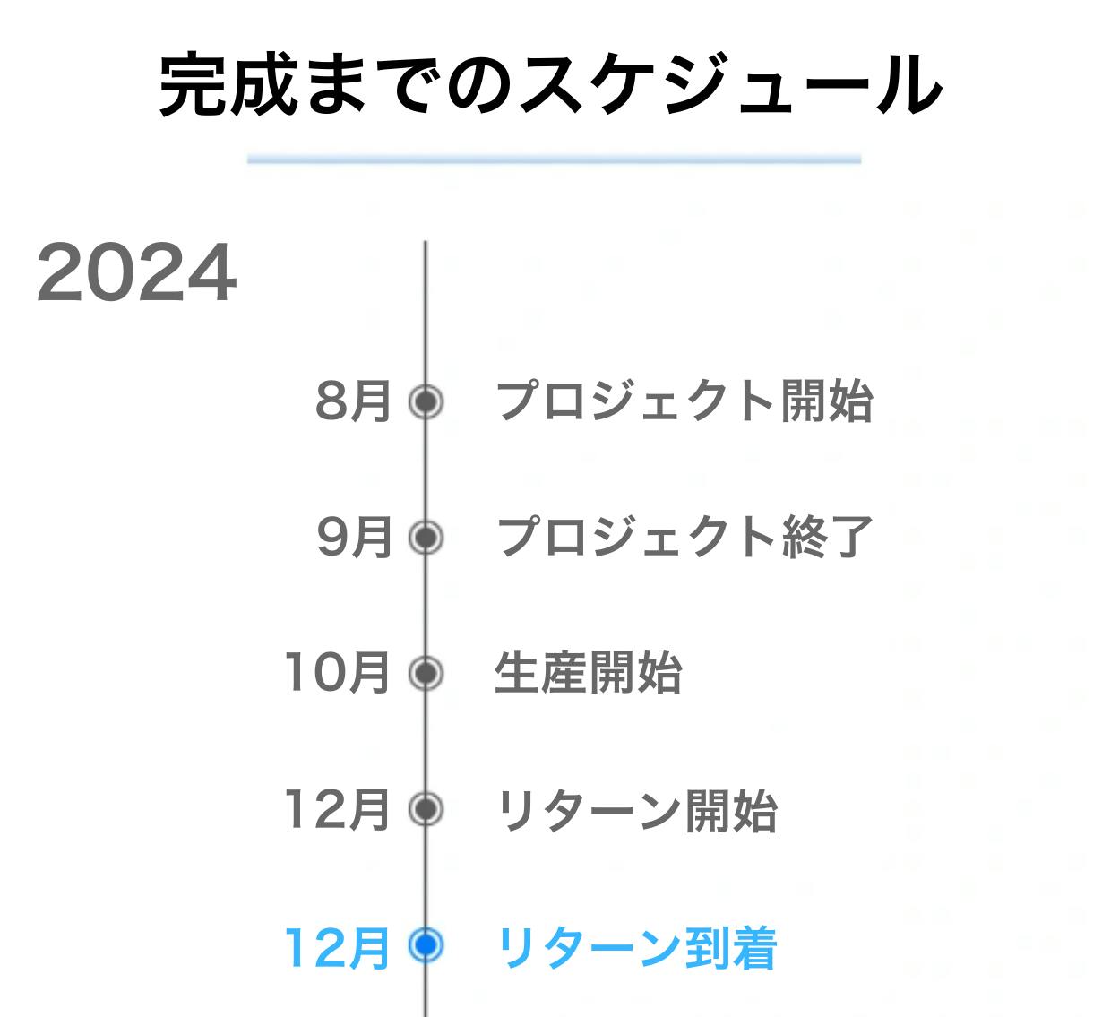 ※本文中に記載させていただいたスケジュールは、あくまでプロジェクト公開時点の予定です。クラウドファンディングを経て輸入を行う性質上、配送遅延のおそれがございます。