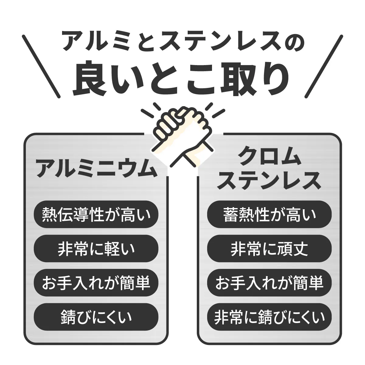 二層鋼クラッドで早く熱が伝わり、しかも逃さない。