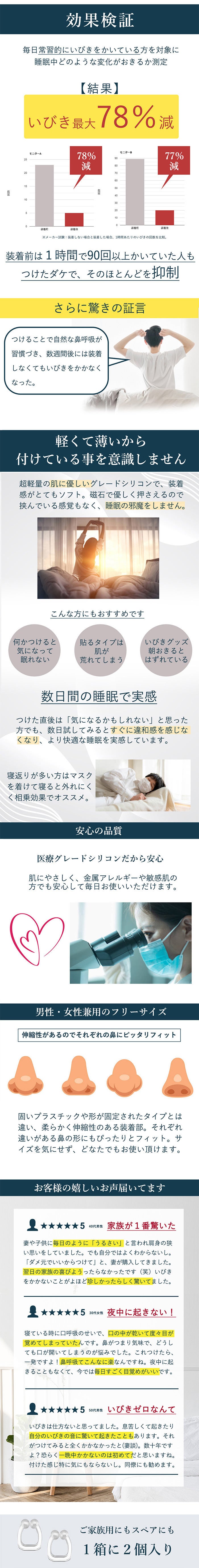 株式会社イーストメディカルは、創業18年を迎えます。この18年の間に様々な変化に対応し、揺るがない信念と高い品質を保持しながら成長を続けて参りました。商品にこだわり全国から健康雑貨・便利雑貨等を仕入れています。睡眠環境が問題視される現代で、手軽にいびき対策が出来る製品を目指し、様々な専門家の意見を聞きながらこの商品を販売する事に至りました。この度販売する商品で、実感して頂きたいと思います。最後に私たちはSLEEP MAGICを制作するために、製造工場とデザイナー、弊社の3社が一丸となりプロジェクトを誠心誠意進めています。 本文中に記載させていただいたスケジュールは、あくまでプロジェクト公開時点の予定です。 ご支援の性質上、ご支援の数が想定を上回った場合、製造工程上の都合や、配送作業に伴う止むを得ない事情によりお届けが遅れる場合がございます。 ・仕様、デザイン等、一部変更になる場合がございます。 あらかじめご了承下さい。 ※本プロジェクトを通して想定を上回る皆様からご支援頂き、現在進めている環境から量産体制を更に整えることができた場合、正規販売価格が販売予定価格より下がる可能性もございます。 ※原則として、配送遅延に伴うご支援のキャンセルはできませんが、リターン配送予定月から3ヵ月を超えた場合には、希望者に限りキャンセルにて対応させていただきます。 本製品を手に取った皆様に喜んでいただけるよう、弊社スタッフ一同、心を込めてご対応いたしますので、ご支援くださいますよう宜しくお願い申し上げます。