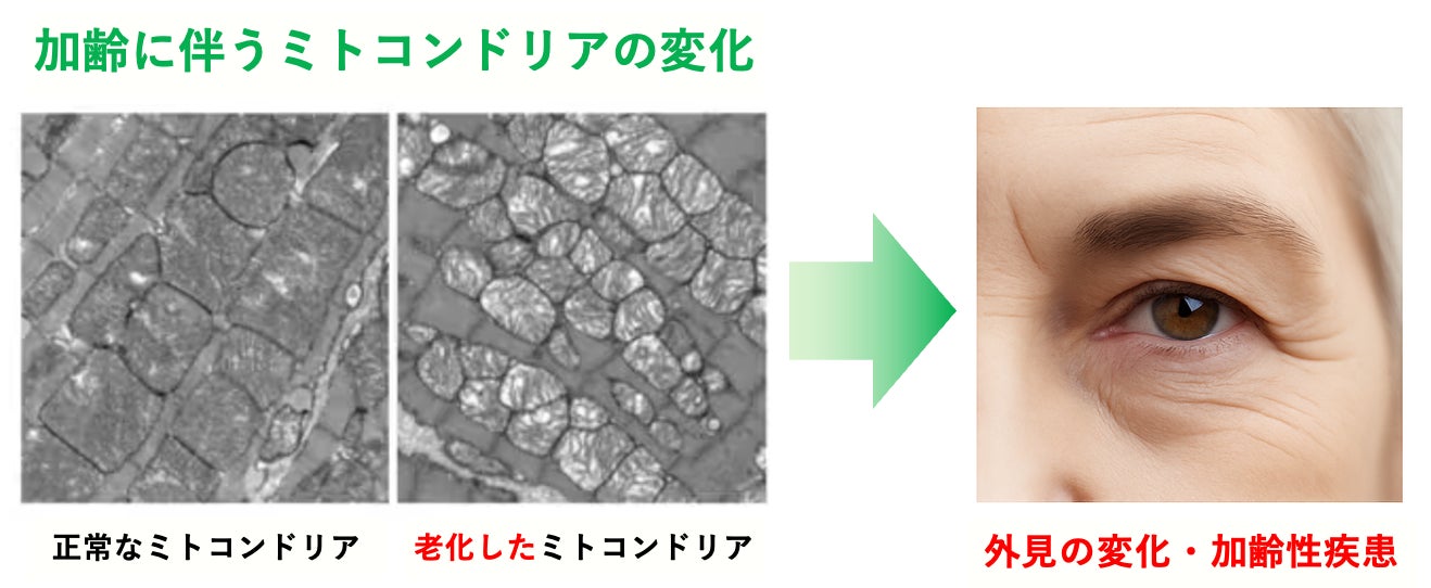 一方で、ミトコンドリアは、年齢を重ねるにつれて数や形が変化したり、働きが弱まったりすることが知られています。