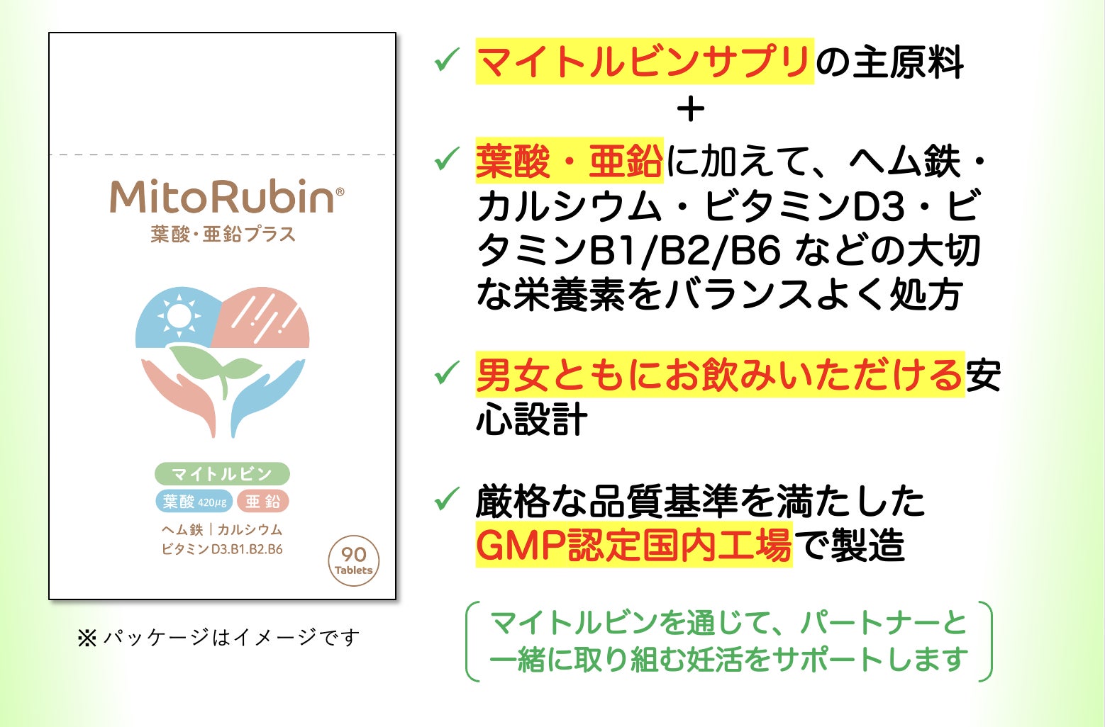そうした知見を背景に、私たちは新たに「妊活版マイトルビンサプリメント」の開発を進めています。