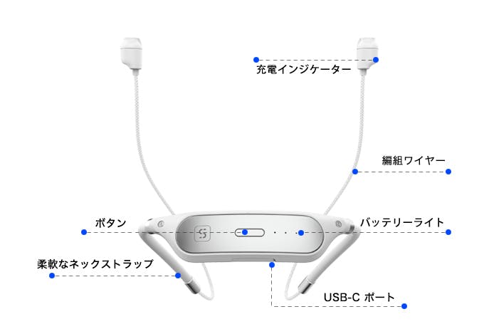 首にフィットするデザインで左右に揺れにくい安定設計。