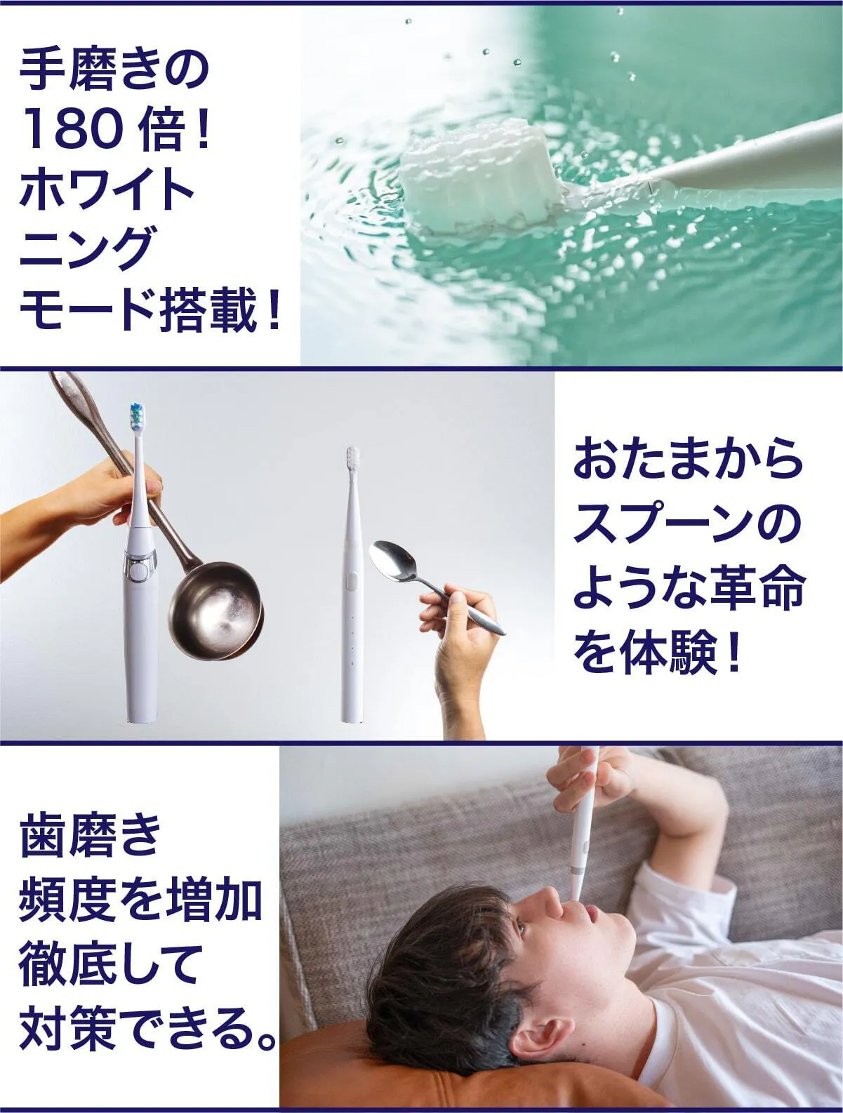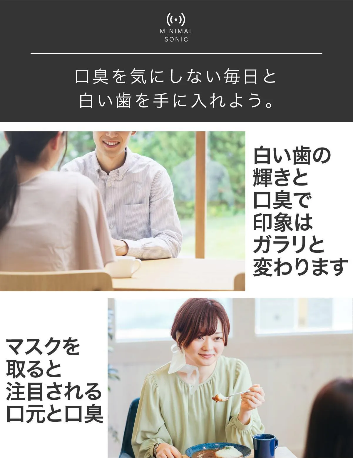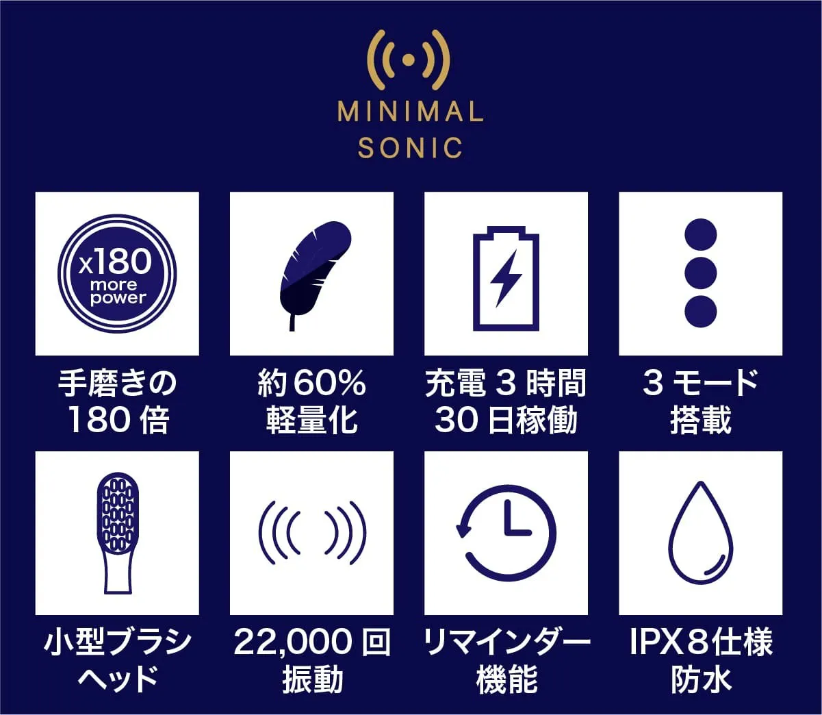 私達は日本の電動歯ブラシ普及率22%をなんとかしたいと考え、ミニマルソニックを誕生させました。口腔内のケアは大変重要なものであるにも関わらず、そのツールの進歩はまだまだです。ミニマルソニックが少しでも日本の電動歯ブラシ普及のきっかけになれば大変嬉しいです。