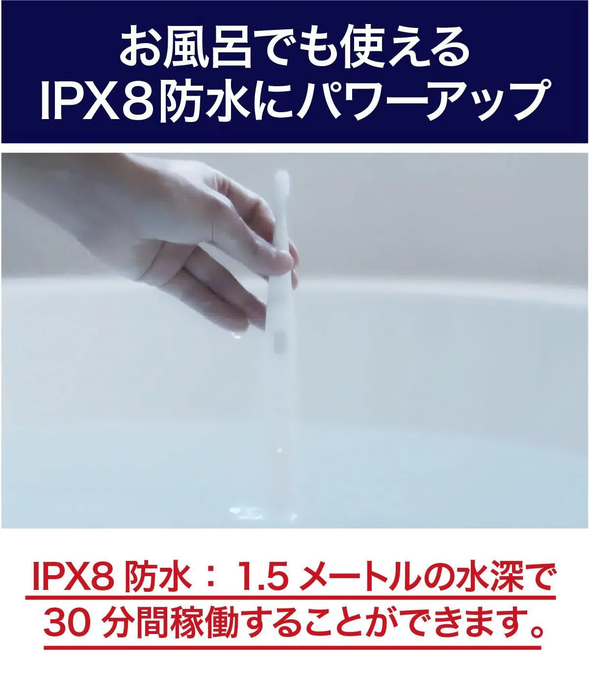 version1ではIPX7防水でしたが、IPX8防水にレベルアップしました。IPX8は防水を示す数値のなかで最も高いレベルで、水深1.5メートルに沈めて、約30分経過してから取り出しても問題なく使えます。