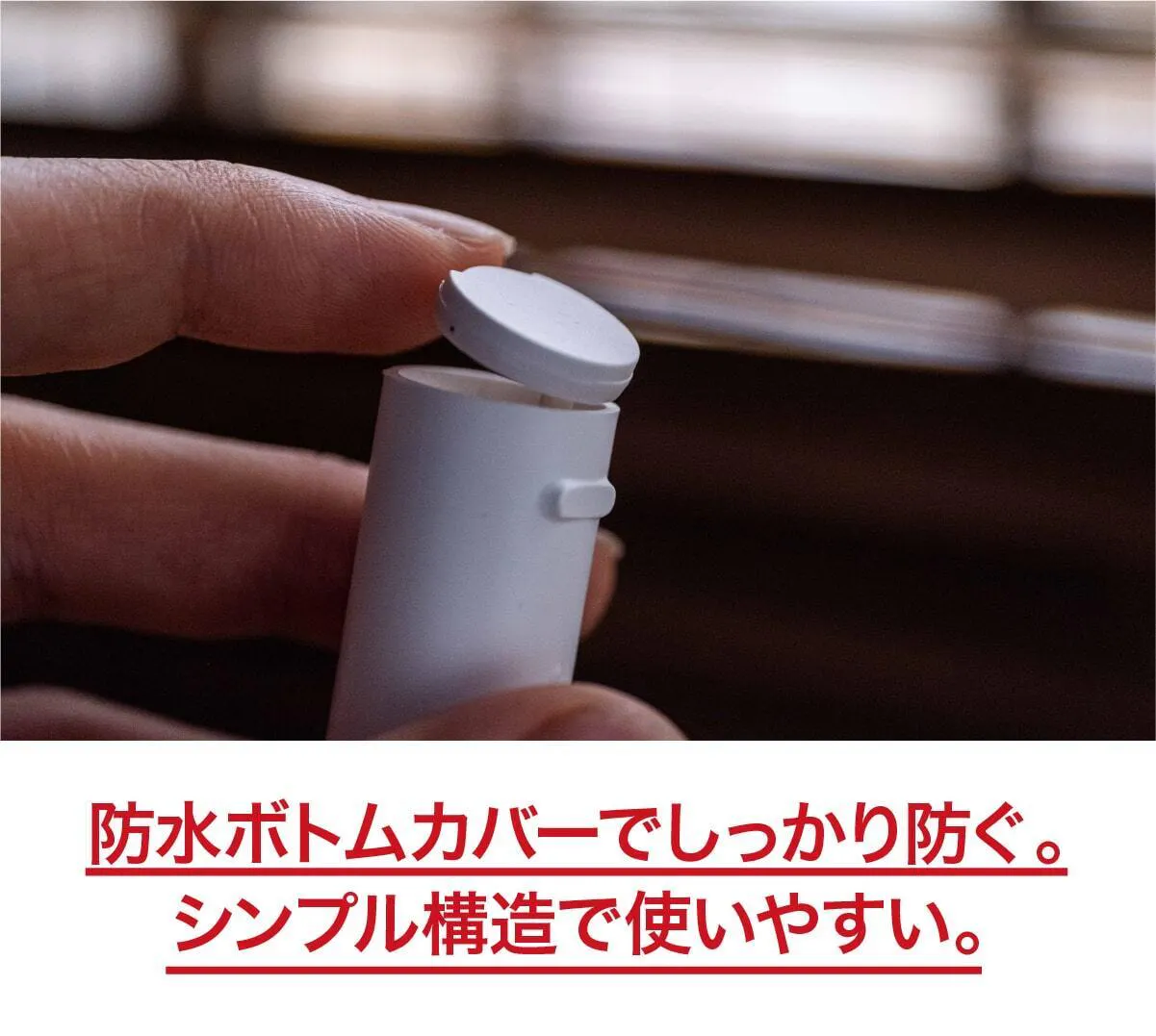 シンプルな構造の防水ボトムカバーを搭載しているから水の侵入をしっかり防ぎます。使いやすいのもポイント。