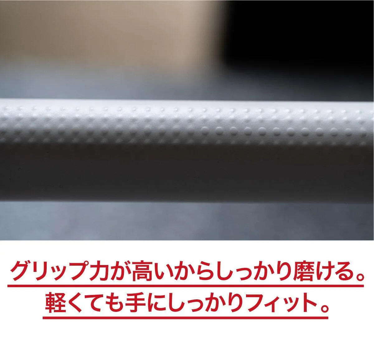 ミニマルソニックは軽くて小さいながらもパワフルです。その特徴を支えるのが粒子グリップです。手にしっかりフィットして高いグリップ力で磨くことができるのです。