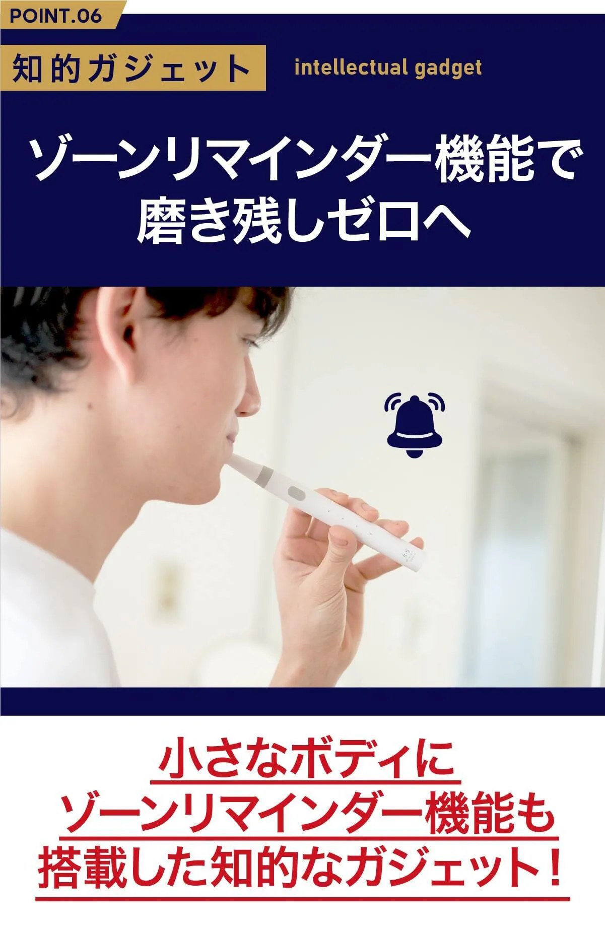 手磨きだと「歯のどの部分をどれだけ磨いたか?」がわかりにくいと思いませんか?ミニマルソニックはゾーンリマインダー機能を搭載しました。
