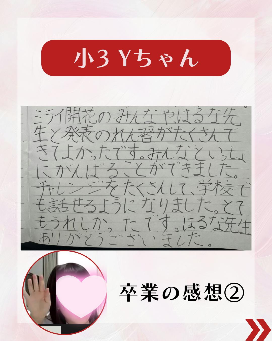 ✅私も夫も、子どもへの前向きな言葉かけが出来るようになり、家族の笑顔が増え家庭が明るくなりました