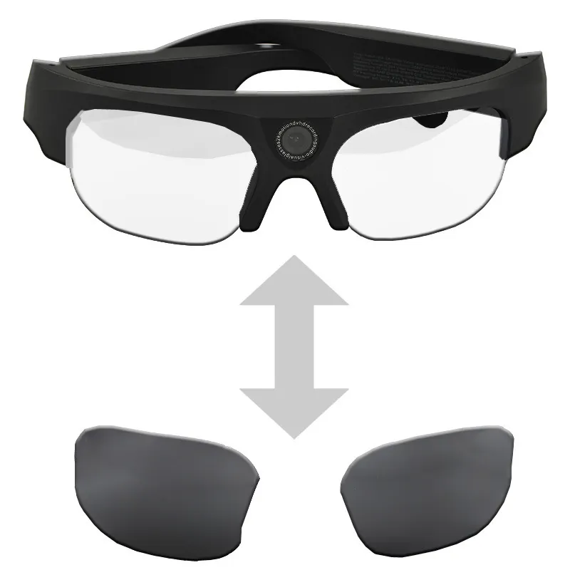 Eye Visionのレンズは交換可能です。セットのレンズを使えば、伊達メガネやサングラスとしても利用できます。