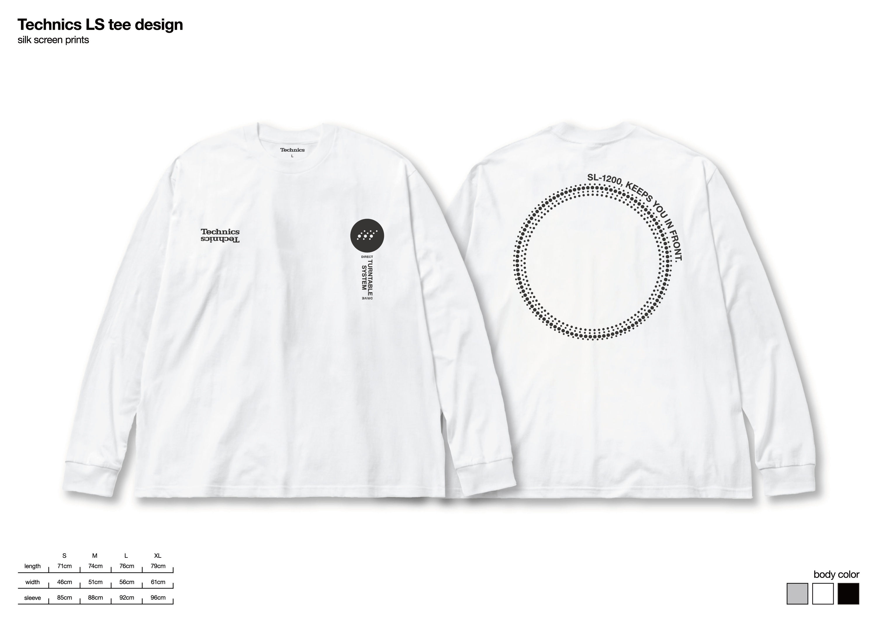 6.0 ozのオープンエンド糸を使用したTシャツ。SL-1200シリーズを象徴するプラッターのデザインが落とし込まれたクラウドファンディング限定のアイテム。ホワイト、ブラック、グレーの3色展開でTechnicsのオリジナルプリントタグ仕様です。