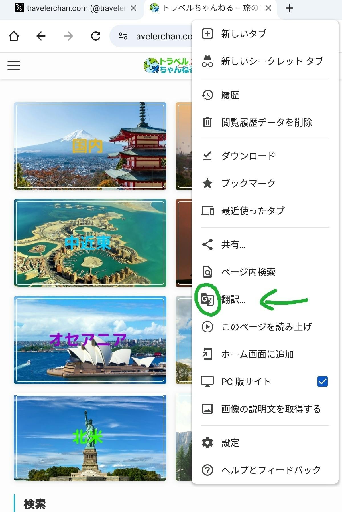 ①↗️右上の三点ボタンを押す。Google翻訳を選択します。