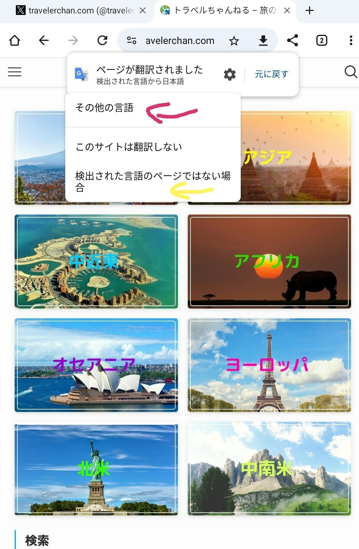 ②赤い⬅️:自分の言語、黄色⬅️:翻訳したい言語を選ぶ
