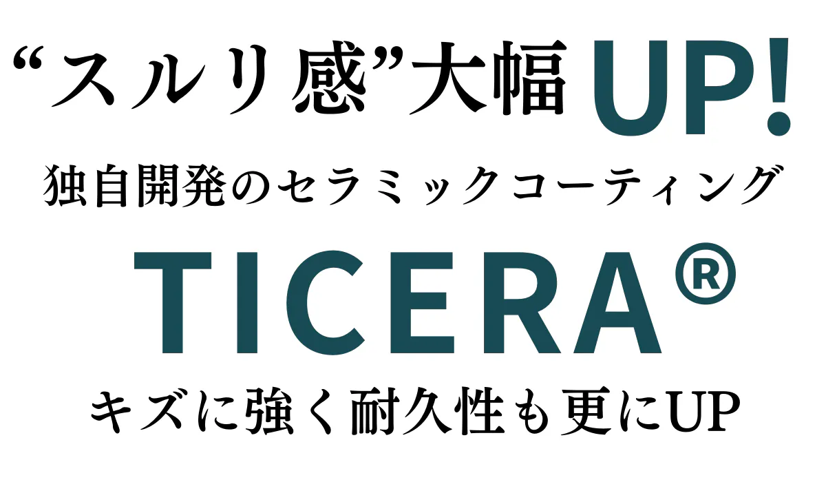 独自開発された安全性の高い「TICERA®」チタン×セラミックコーティング×アルマイトはキズに強く、耐久性も従来品と比べ格段にアップ。