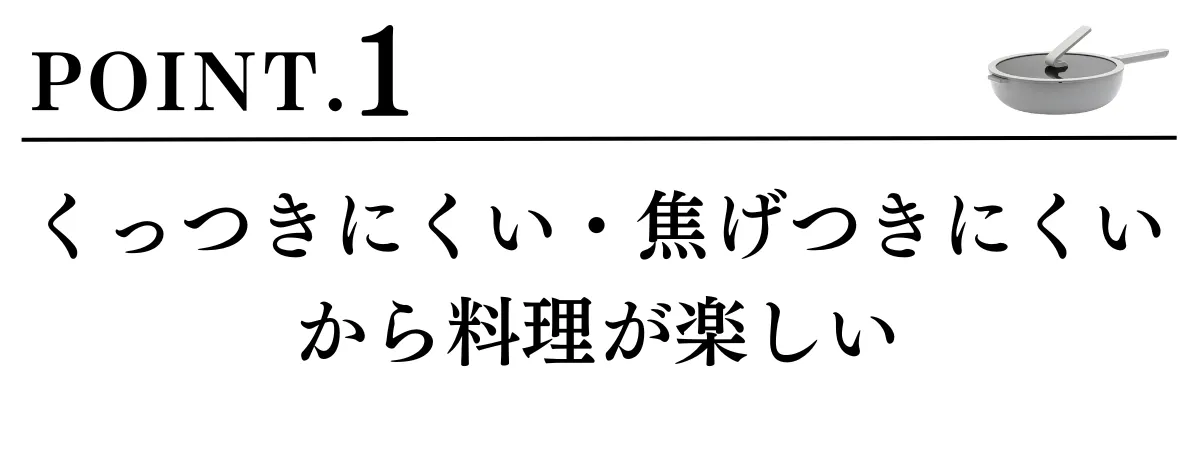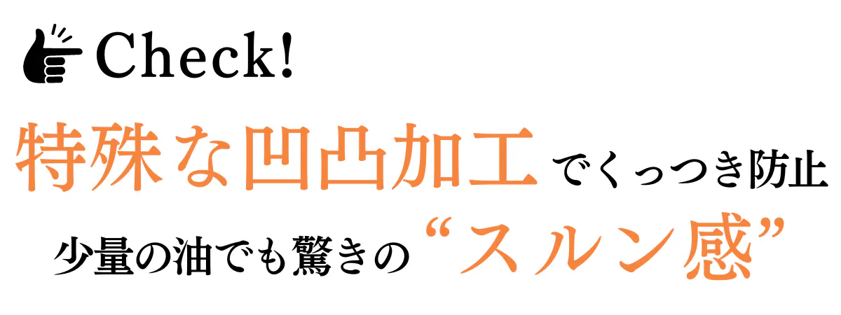 驚きの"スルリ感"で、食材のくっつき、焦げ付きをしっかりと防ぎます。