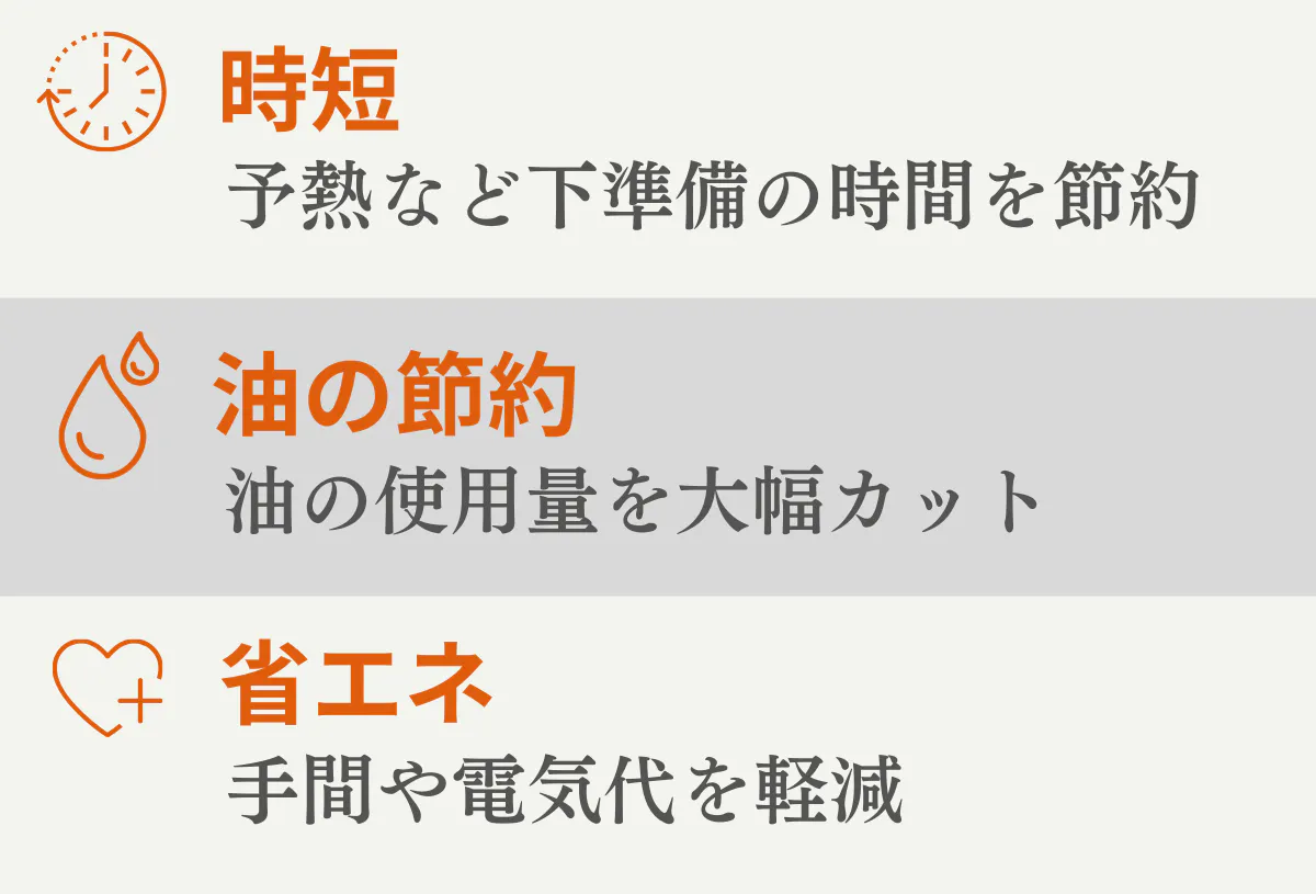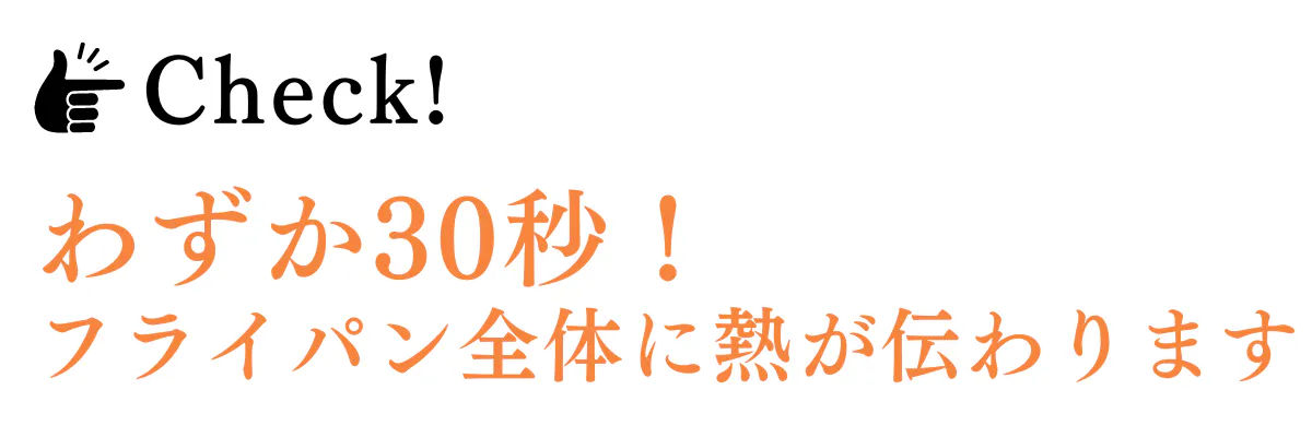 わずか30秒!素早くフライパン全体に熱が均一に伝わるので、外はサクっと、中はふっくら美味しい料理に仕上がります。