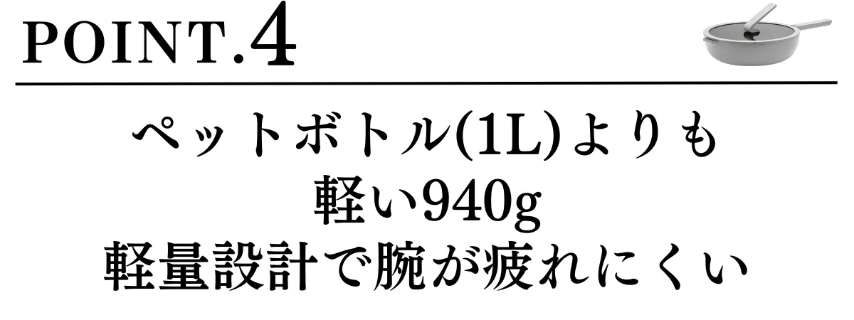 鉄などの重いフライパンに比べ「WOKY Hahapan2.0」は1kg未満の軽量設計。