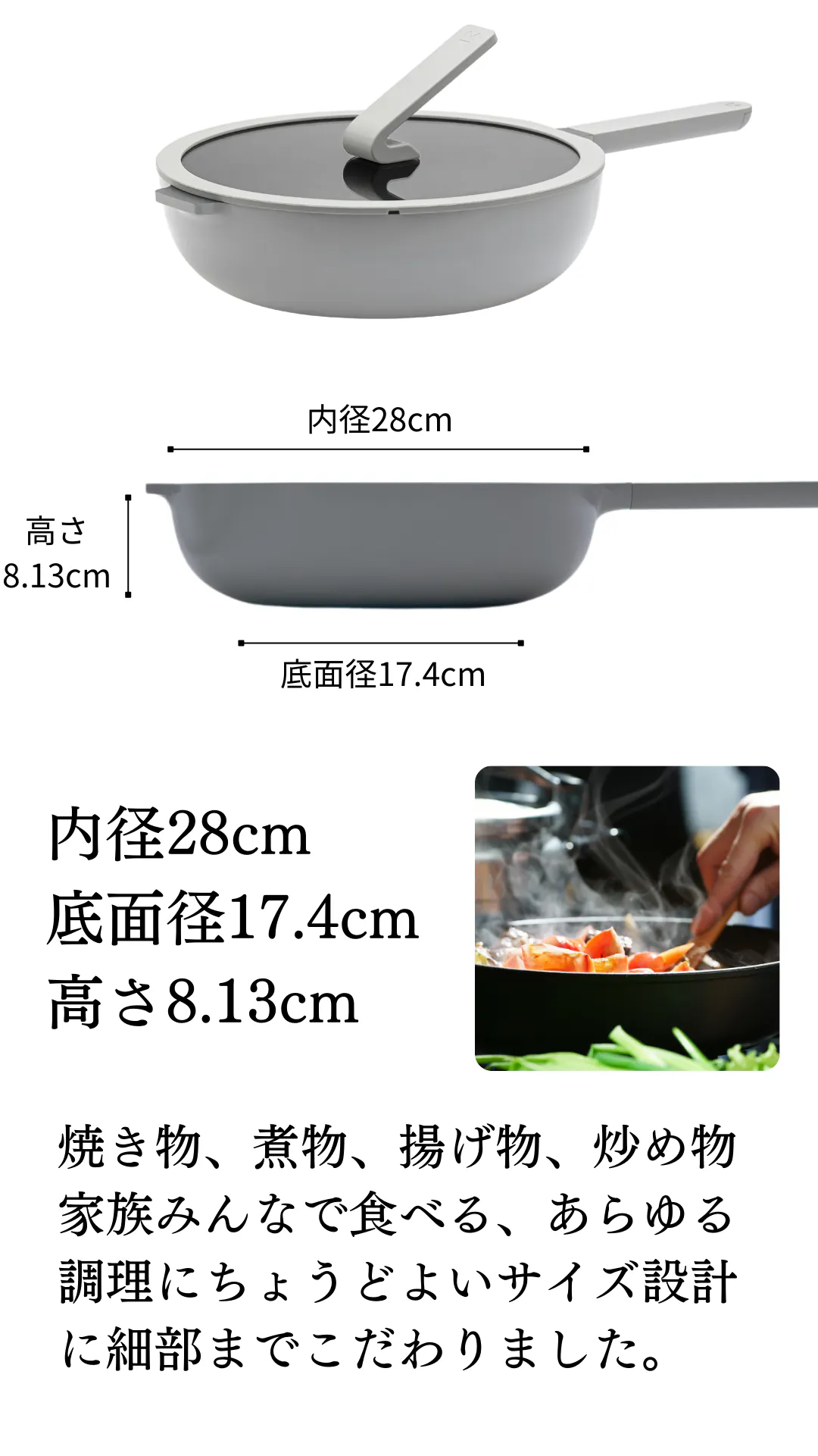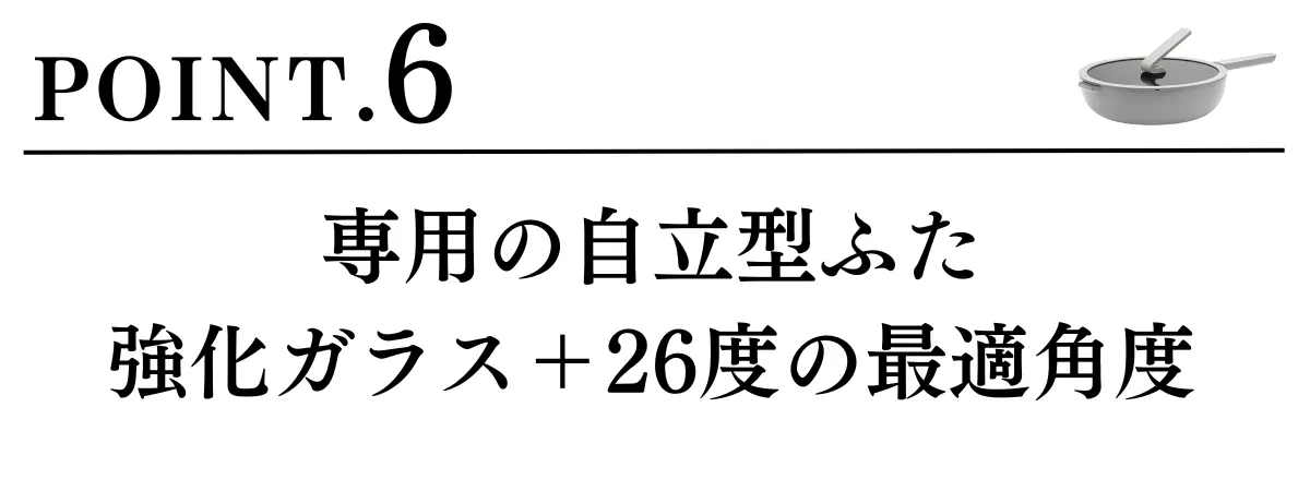 持ち手の角度も、最も置きやすく取りやすい最適な角度「26度」に設計。フライパン本体だけではなく蓋にも細部までこだわっています。